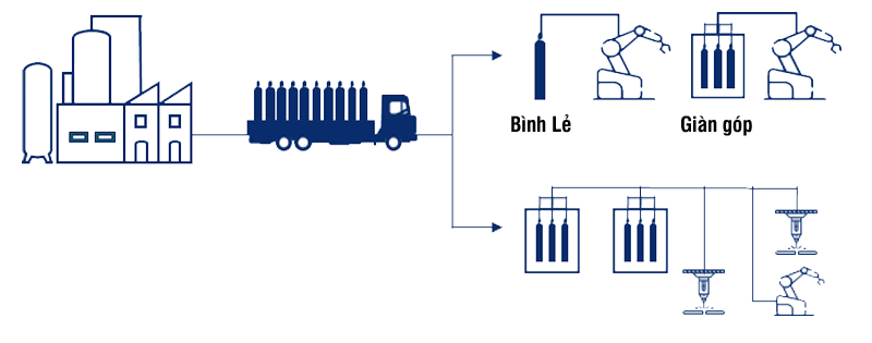 To promptly respond and solve the needs of businesses, Natra Global provides gas in many different forms directly to customers, specifically as follows: 1/ Compressed gas cylinders and cylinder clusters 2/ Mobile liquefaction tanks 3/ Tank trucks pump directly into tanks at the customer’s factory Gas supply form – Compressed Gas Cylinders and Cylinder Assemblies: Compressed gas cylinders are a convenient and flexible form of gas supply for customers who need to use industrial gas on a small scale or in difficult-to-reach locations. We provide compressed gas cylinders with various capacities (14L, 40L, 50L) to meet your diverse needs. Liquefied gas supply form: – Portable Liquid Tank (PLC): This is a convenient and flexible form of supply for customers who need to use a larger amount of gas than compressed gas cylinders, helping to save time and maintain efficiency. PLC tanks (175L, 500L) are designed to be easily moved and are capable of maintaining the temperature and pressure needed to keep the liquefied gas in a stable state. This is especially important when you need to use liquid gas in applications such as Mechanical, Metal Fabrication, Agriculture, Food. – Filling from Tanker to Storage Tank at Customer’s filling location: For businesses that need to use a larger amount of gas, we provide filling services from tankers to storage tanks at the customer’s factory. This ensures a continuous and stable supply for the Customer’s production process or application, helping to save time and optimize the production process. We are committed to ensuring quality and safety in the process of filling and storing liquefied petroleum gas. The main areas we serve include: Long An, Ho Chi Minh City, Tay Ninh, Binh Duong, Dong Nai, Nhon Trach and some neighboring provinces in the Southwest. Professional service attitude and quick response to all customer requests is the motto we always aim for. If you have any questions or need specific advice on our products and services, please do not hesitate to contact us by phone at 0589.986.133